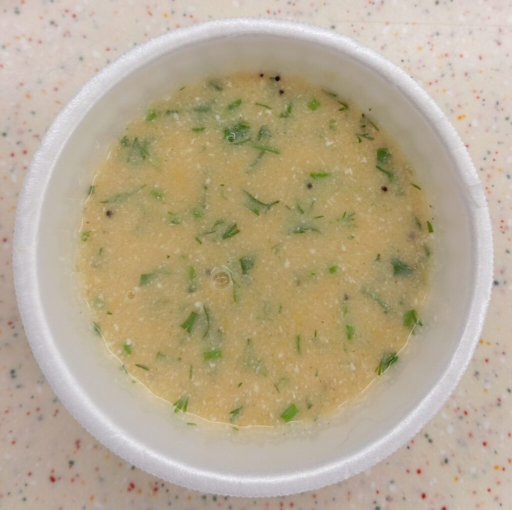 Středa 14.1. Polévka – “Gujarati channa dhal” Polévka ze žluté čočky s jogurtem a čerstvým koriandrem (7)